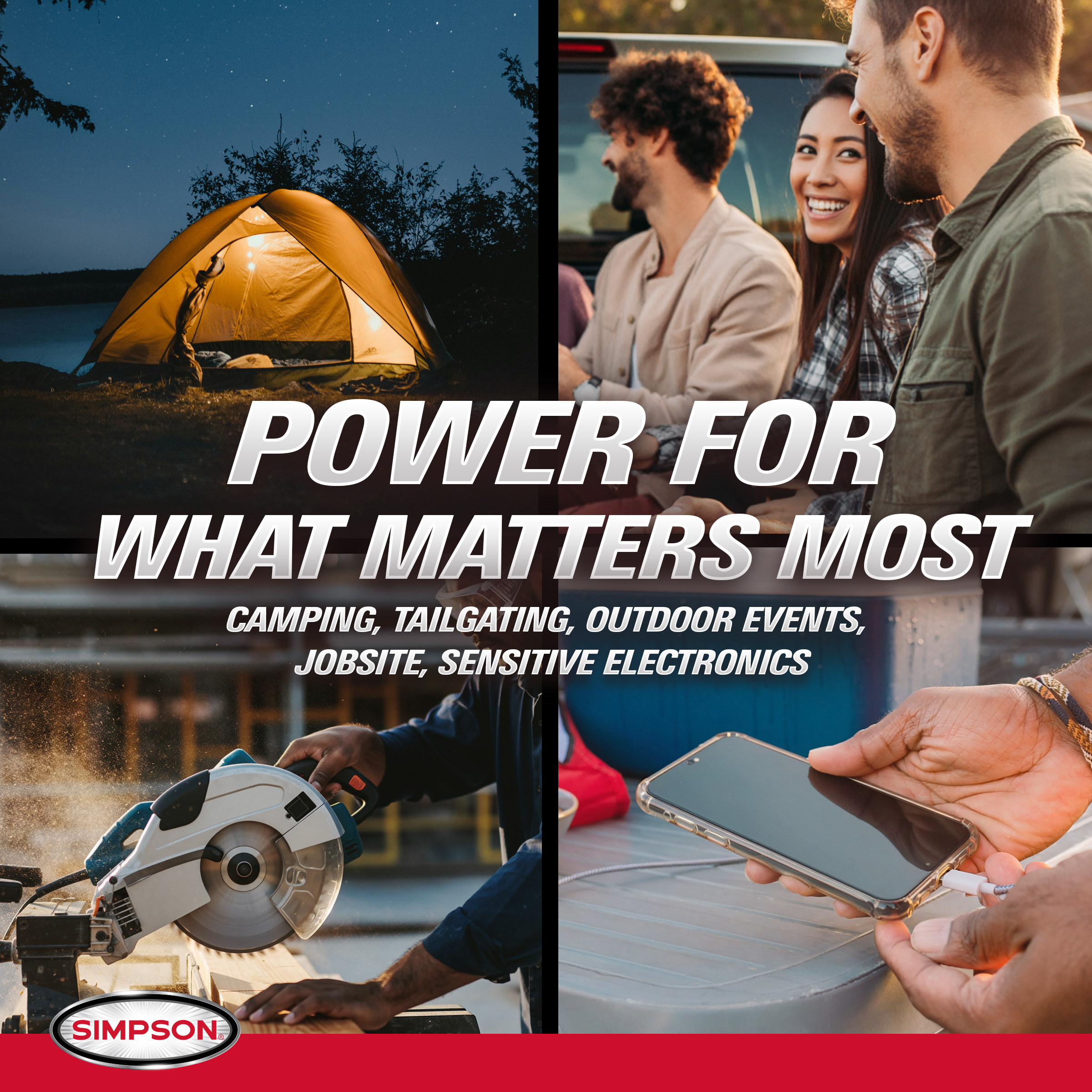 SIMPSON® Inverter Generators are ideal for powering your adventures, whether you’re camping, tailgating, or running small appliances or tools at home. This series of inverter generators are boast a compact, lightweight design that makes them easy to pack, transport, and store. From keeping your campsite lit and your devices charged, to powering fans, mini-fridges, or game-day gear, you can count on SIMPSON to deliver quiet, reliable power wherever you need it.