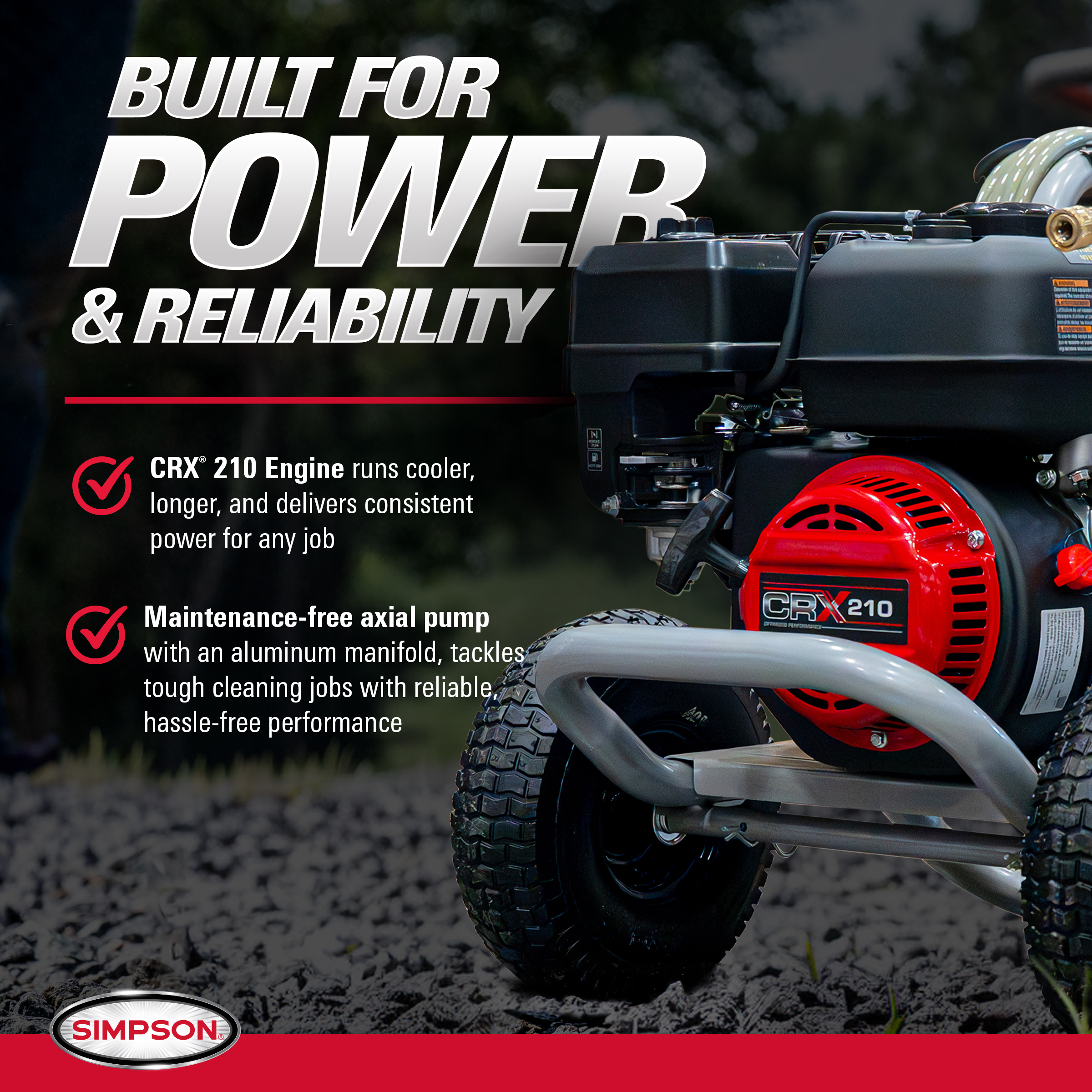 3400 PSI at 2.5 GPM CRX® 210 with OEM Technologies™ Axial Cam Pump Cold Water Premium Residential Gas Pressure Washer