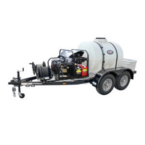 This powerful SIMPSON® hot water mobile pressure washing system will handle all your commercial jobs. It is perfectly suited for contract cleaners, mobile detailers, municipalities, and resorts. The trailer is dot certified as an over-the-road pressure washer system. Job-Site set-up is a snap. Pull up to the work area, connect the spray gun, start the engine, and begin cleaning. Equipped with a (49-State compliant) HONDA® engine with an electric start and reliable COMET triplex pump.