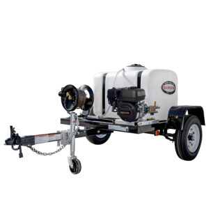 This powerful SIMPSON® cold water mobile pressure washing system will handle all your commercial jobs. It is perfectly suited for contract cleaners, mobile detailers, municipalities, and resorts. The trailer is dot certified as an over-the-road pressure washer system. Job-Site set-up is a snap. Pull up to the work area, connect the spray gun, start the engine and begin cleaning. Equipped with a (49-State compliant) CRX® engine and reliable CAT PUMPS® triplex pump.