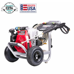 The SIMPSON® PowerShot™ Series is designed to meet the rigorous demands of the cleaning pro. Heavy-duty pressure washers with flow and reliability. Perfect for contractors who specialize in deck cleaning, wood restoration, paint preparation, graffiti removal, and all other professional cleaning services. Equipped with a premium (50-State compliant) HONDA® engine built with high-quality components, designed for optimum performance and renowned for being easy to start. AAA® Pro axial cam pump with patent-pending PowerBoost® Technology provides higher pressure at the nozzle resulting in greater impact and cleaning performance.