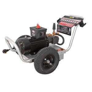 The ALIR2030012B pressure washer is rental-ready. Complete with standard features including; an hour meter, heavy-duty water inlet filter, steel braided Monster hose with QC fittings, and specific set-up & use instructions printed on the steel dashboards. Be confident in the added durability of the heavy-duty aluminum steel frames. Industrial AAA® triplex pumps and a reliable 230V electric motor. This ALIR2030012B is ready for your customer’s tough jobs.