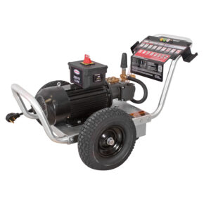 The ALIR2535012B pressure washer is rental-ready. Complete with standard features including; an hour meter, heavy-duty water inlet filter, steel braided Monster hose with QC fittings, and specific set-up & use instructions printed on the steel dashboards. Be confident in the added durability of the aluminum frame industrial AAA® triplex pumps and a reliable 230V electric motor. This ALIR2535012B is ready for your customer’s tough jobs.