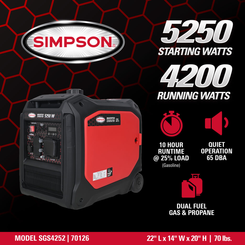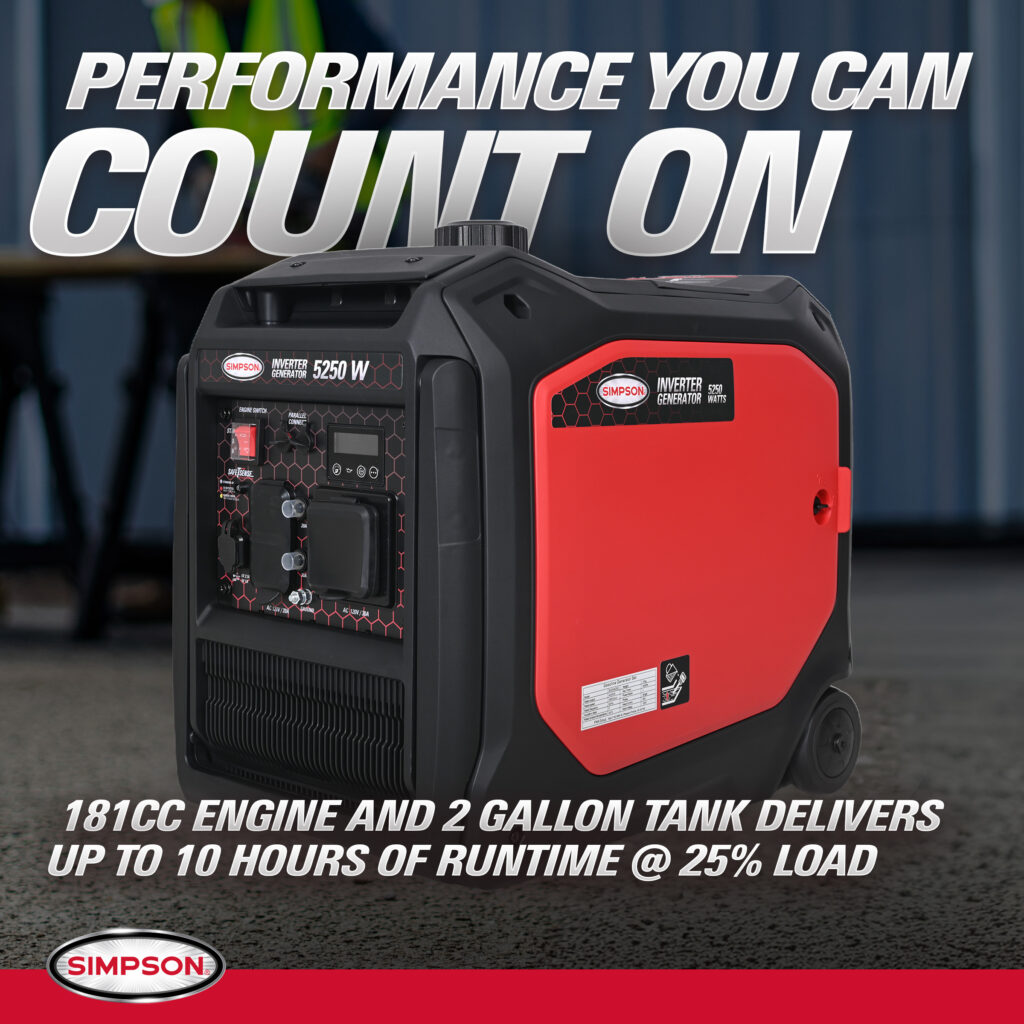 SIMPSON® Inverter Generators are ideal for powering your adventures, whether you’re camping, tailgating, or running small appliances or tools at home. This series of inverter generators boast a compact, lightweight design that makes them easy to pack, transport, and store. From keeping your campsite lit and your devices charged, to powering fans, mini-fridges, or game-day gear, you can count on SIMPSON to deliver quiet, reliable power wherever you need it.