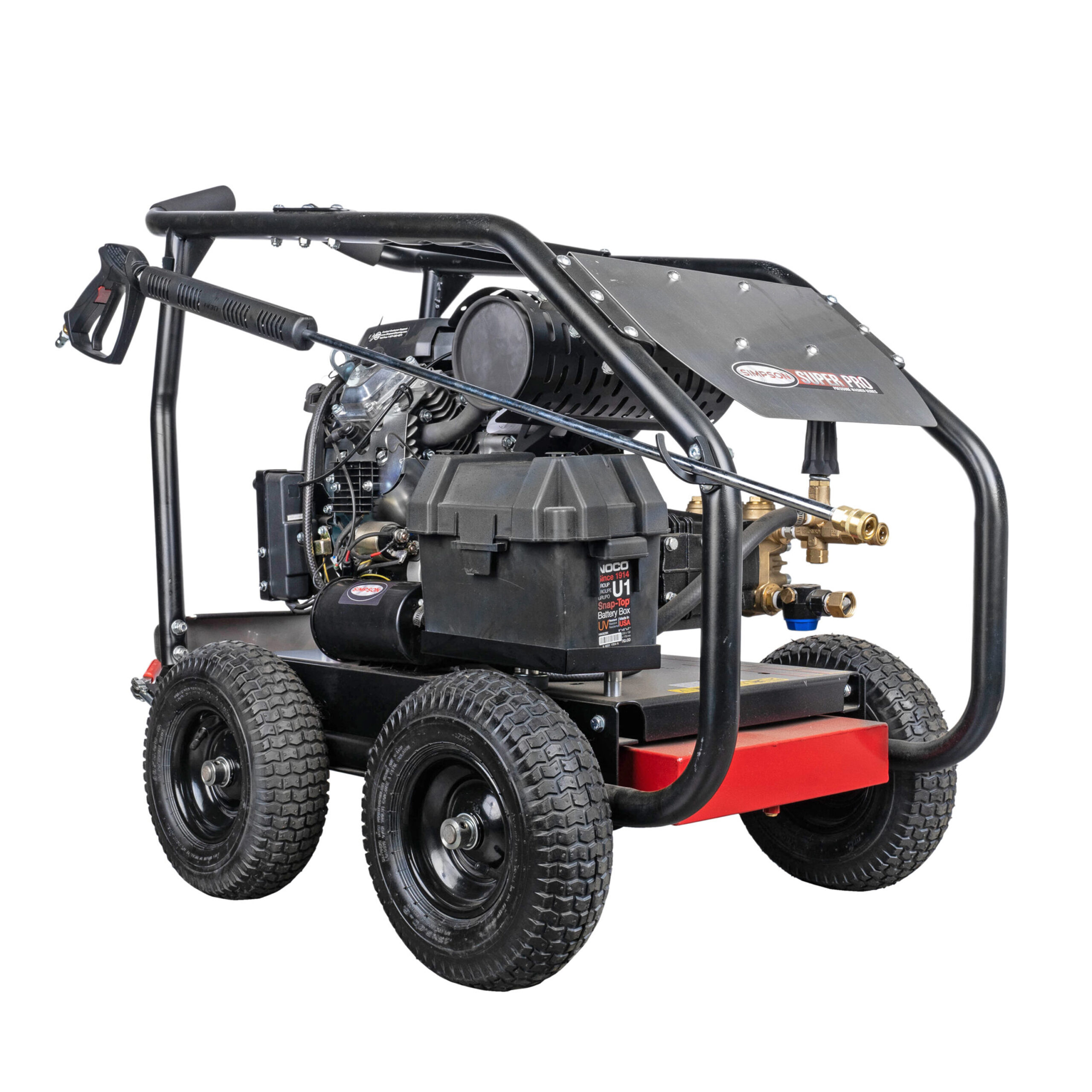 Built for the tough jobs, The SRC5050143E, SuperPro Roll Cage, will handle all your commercial needs. It features a powerful (49-State compliant) CRX® engine and a reliable UDOR® pump. The SRC5050143E also includes an external unloader with a bypass hose, which provides industrial durability for extended pump life.
