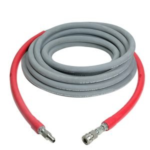 SIMPSON® offers 41190 wrapped rubber hose is designed for industrial and commercial use; the heavy-duty construction and durability make it perfect for the toughest jobs and environments. Our 41190 wrapped rubber hose is rated for temperatures up to 250°F and up to 10,000 PSI. The R2 dual-braided technology with wrapped rubber and 24-inch bend protectors help extend the life of the hose. The 41190 wrapped rubber hose is compatible with pressure washers equipped with 1/2 in. quick connect fittings.
